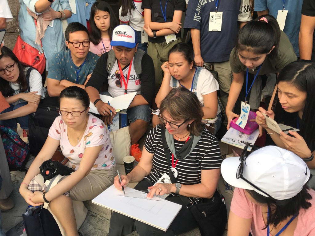 At AsiaLink Sketchwalk in Taiwan 2019. A GREAT USk symposium!!!! Shocking now to see us all so close together, isn’t it? Photo by Rob Sketcherman 🙂